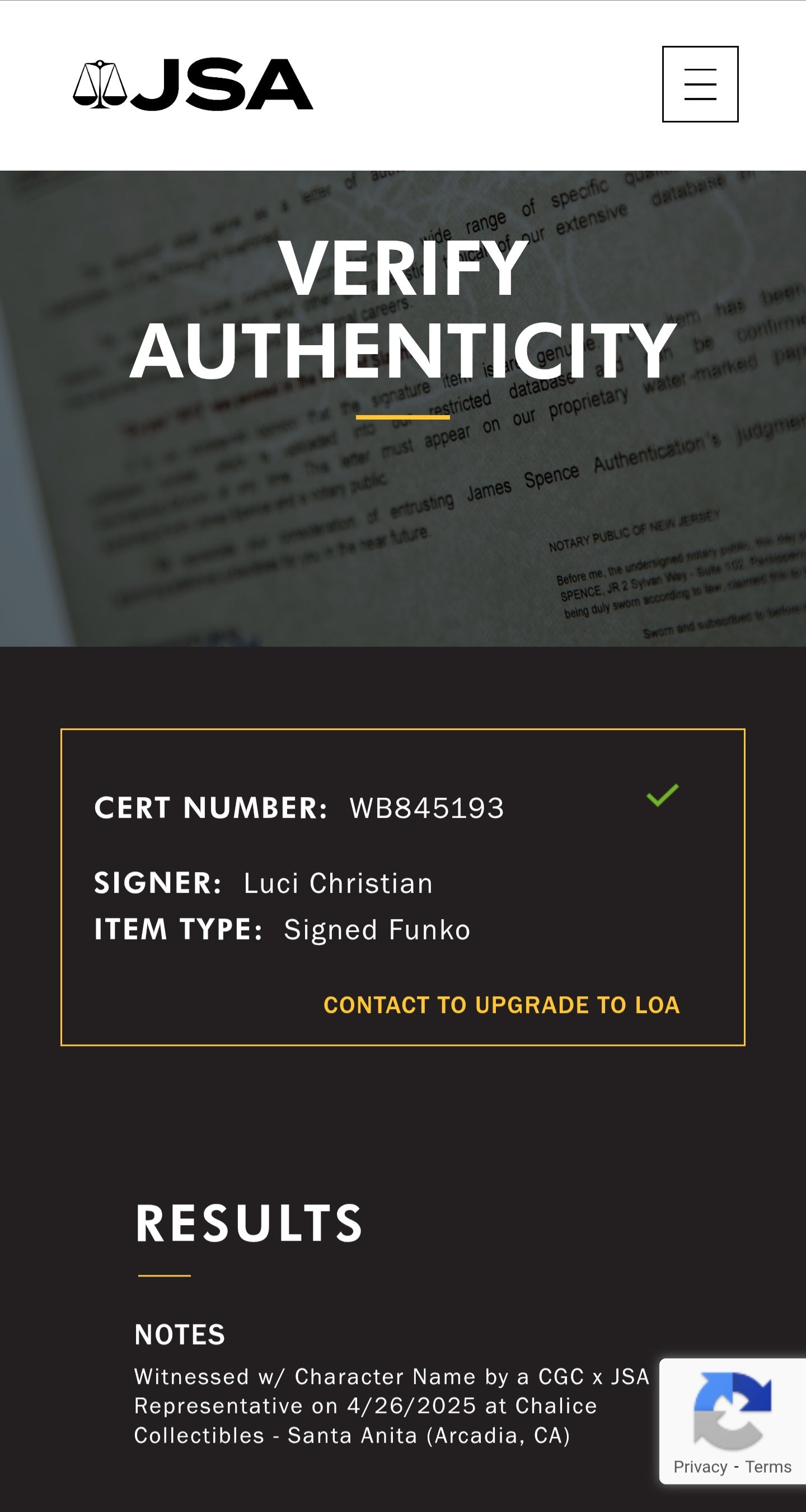 • JSA verified with certification number WB845193 (sticker on box)